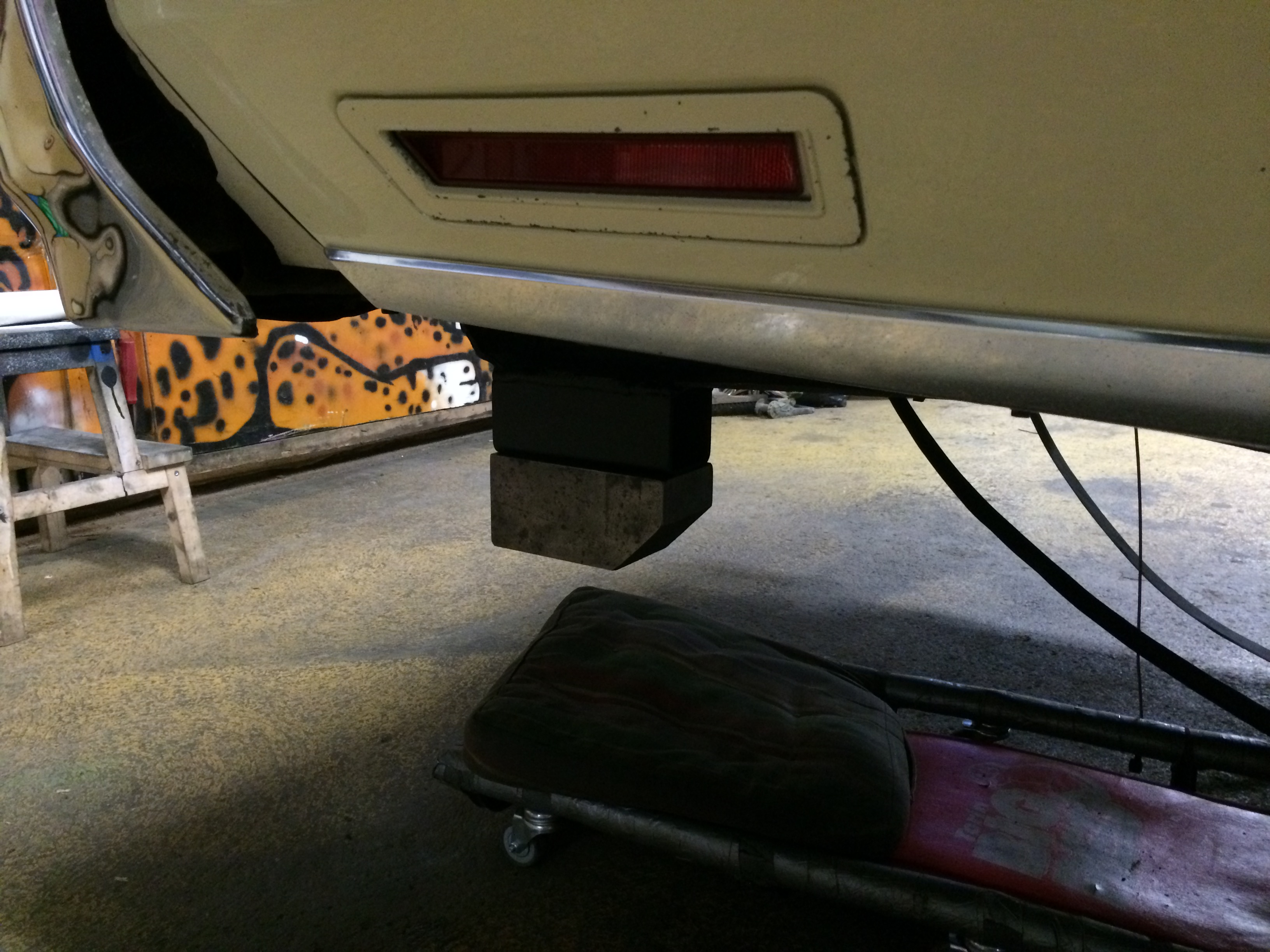 Jag ska köpa ett par kortare fjädrar i bak, räknar med att bilen ska bli ca: 5cm lägre i bak och då kommer den att ligga på blocken i nedsänkt läge.