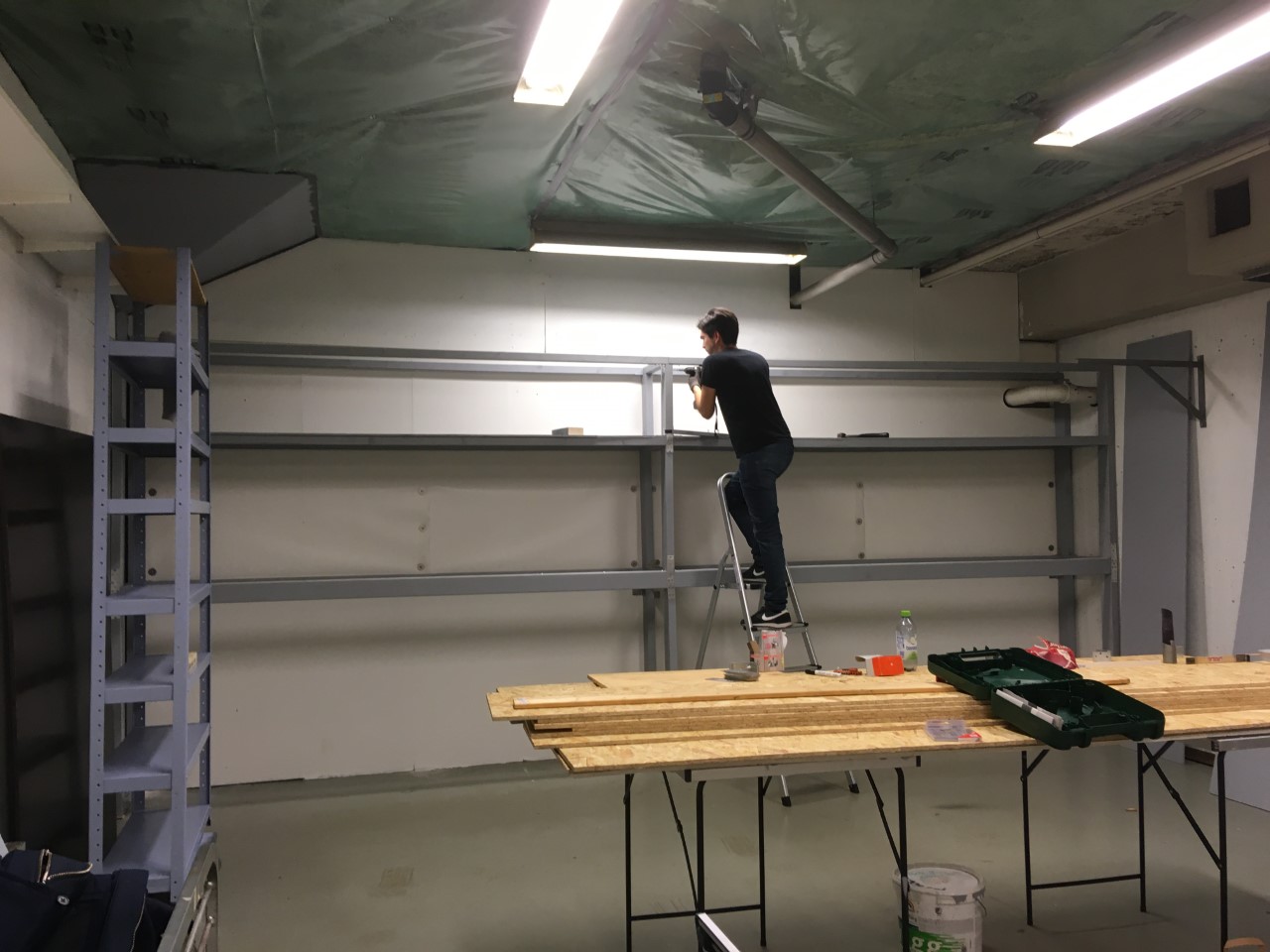 Sen började vi måla å greja i slutet på mars, fimpade dom gamla lagerhyllorna som stod längst in i lokalen. (som syns på första bilden)